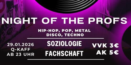Am 29.01. ist es soweit: die night of the profs! Kommt vorbei, wenn ihr ein bisschen feiern wollt:) Unser Line-Up: