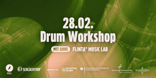 Die Workshopreihe FLINTA MUSIC LAB* richtet sich ausschließlich an FLINTA*-Personen. FLINTA* steht für Frauen, Lesben, inter, nicht-binäre, trans und agender Personen. Die Angebote dienen dem Empowerment und der gezielten Förderung von Menschen, die von patriarchalen Strukturen benachteiligt sind. Mit der Buchung eines Tickets bestätigen die Teilnehmenden verbindlich, dass sie der Zielgruppe FLINTA* zugehörig sind und diese Teilnahmebedingung zur Kenntnis genommen haben. Diese Bestätigung ist Voraussetzung für die Teilnahme. Solltet ihr doch nicht teilnehmen können, bitten wir um Info, sodass andere Interessentinnen nachrücken können. Kontakt: info@schlachthof-wiesbaden.de