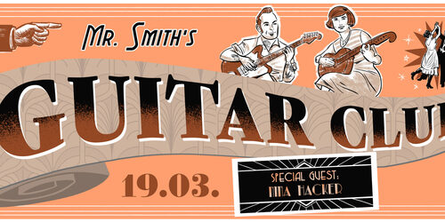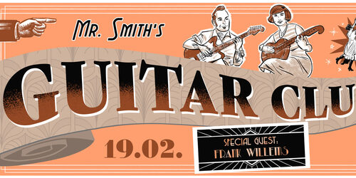 Ab Januar 2025 gibt es eine neue Veranstaltungsreihe für Gitarrenfreunde in Wiesbaden! Der Gitarrist Martin Schmidt aka THE INCREDIBLE MR. SMITH empfängt in seinem GUITAR CLUB einmal im Monat musikalische Gäste aus der Gitarrenszene in und um Wiesbaden zum musikalischen Dialog. Eigenkompositionen und Klassiker aus Rock, Blues, Jazz, Surf und Instrumentalrock werden im Duo durch den Stil-Wolf gedreht, unterstützt durch Live Loops.