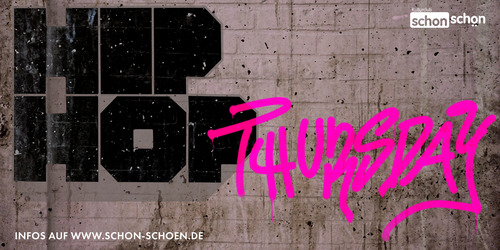 Der Donnerstag wird schon schön und zu wild. Der DJ pfeffert uns die besten, neuesten und heißesten Hits in Sachen Hip-Hop, R&B und selbstverständlich Deutschrap um die Ohren. Egal ob Oldschool, Newschool, Conscious oder Gangsta-Rap, hier ist für jeden was dabei.