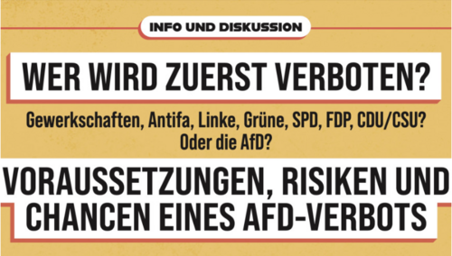 In einem 30minütigen Impuls-Vortrag wird der Referent Uwe Remus, ausgehend von Artikel 21 Grundgesetz und der Rechtsprechung des Bundesverfassungsgerichts, die Voraussetzungen, Risiken und Chancen eines Verbots der AfD darstellen. Er wird dabei auch auf die Argumente eingehen, die gegen ein Verbotsverfahren vorgebracht werden.