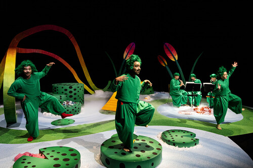 Den ganzen Tag Fliegen essen und nachts im Mondschein bei schöner Musik im Teich baden – alle Frösche lieben ihr Froschleben! Wenn nicht eines Tages ein Froschmädchen durch Zufall eine Krone finden, sich zur Königin der Frösche erklären und das Gleichgewicht im Teich durcheinanderbringen würde. Denn eine Königin muss ihre Fliegen nicht mehr selber fangen, darf Befehle erteilen und auch mal andere Frösche bestrafen. Aber reicht eine Krone aus, um Königin zu sein? Davide Calìs gleichnamiges Kinderbuch über Machtwillkür und Gleichheit wird im JUST in dieser Spielzeit als Musiktheateruraufführung erstmals auf die Bühne gebracht.