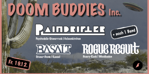 Stoner Rock-Konzert zum Jahresabschluss mit ROGUE RESULT aus Wiesbaden, PLAINDRIFTER aus Gelsenkirchen, HELYOS aus Berlin und BASALT (Doom/Sludge) aus Kassel.