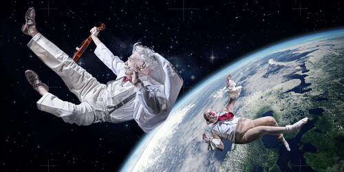 Der Stoff ist charmant-grotesk und eine faszinierendes Zeitzeugnis des Berlins der 1920er Jahre: Albert Einstein führt einer erlesenen Gesellschaft, darunter Richard Strauss, Max Liebermann und George Bernard Shaw, seine neueste Erfindung vor: eine Zeitmaschine. Doch in welche Epoche soll die Reise gehen? Welche Persönlichkeiten möchte man treffen? Schließlich geht es nicht ohne Komplikationen in die Romantik … Amüsant und dennoch kritisch visionär ist das Libretto des berühmten Theaterkritikers und Autors Alfred Kerr.