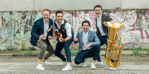 Vielfalt, Experimentierfreude, das Ausloten neuer Grenzen, das ist das Lebenselixier der Brüder. Fabian, Jonathan, Lukas, David spielen Tuba, Klavier, Bratsche, Blockflöte. Jeder von ihnen tut es auf seine ganz spezielle Weise, am eindrucksvollsten als Team auf der Bühne. Dabei gilt: Kein Konzert ist wie das andere, kein Stück, wie man es kennt und die Instrumente spielen auch nicht immer das, was man erwartet.
